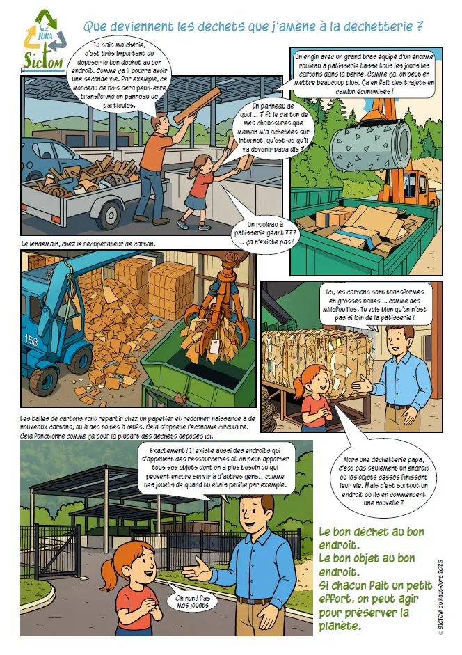 Le SICTOM du Haut-Jura revend métaux, carton,… selon les cours mondiaux, mais les recettes du tri ne couvrent pas les coûts des autres traitements (démontage d’appareils, valorisation des déchets verts …), assurés par des prestataires externes.